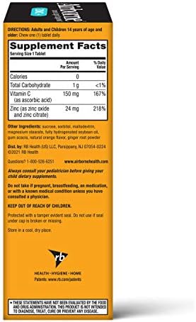 Amazon Com Airborne Vitamin C Zinc Chewable Tablets Chewable Zinc Immune Support Supplement Non Gmo Gluten Gelatin Free No Color Added Naturally Flavored 32 Chewable Tablets Orange Flavor Health Household
